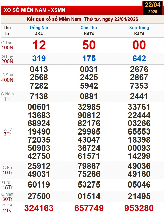 Kết quả xổ số miền Nam (XSMN) ngày 22/4