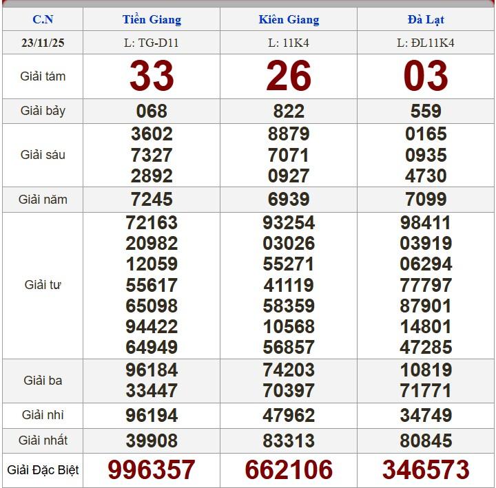 Kết quả xổ số miền Nam ngày 23/11/2025