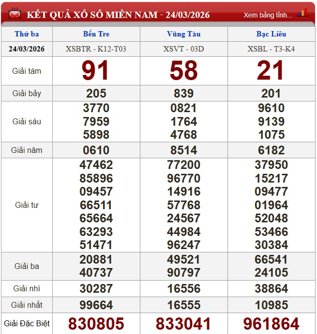 Kết quả xổ số miền Nam (XSMN) hôm nay ngày 24/3