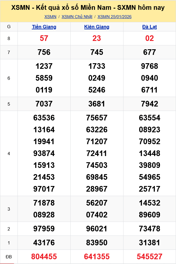 Kết quả xổ số miền Nam ngày 25/1/2026