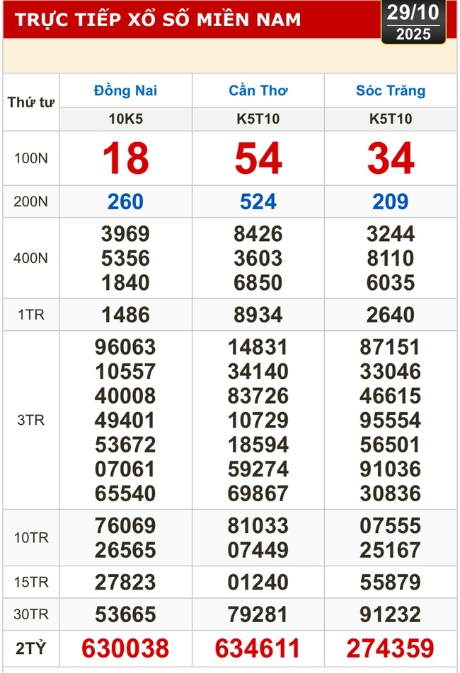 Kết quả xổ số miền Nam ngày 30/10/2025. KQXSMN 30/10