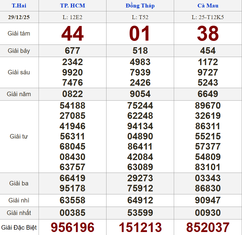Kết quả xổ số miền Nam (XSMN) ngày 29/12