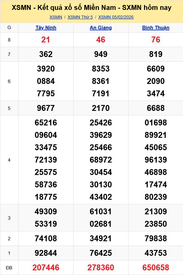 Kết quả xổ số miền Nam ngày 5/2/2026