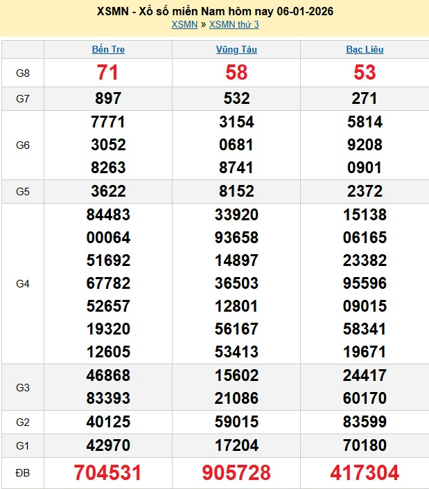 Kết quả xổ số miền Nam ngày 6/1/2026