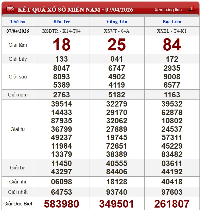 Kết quả xổ số miền Nam ngày 7/4/2026