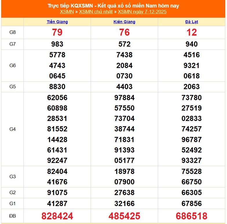 Kết quả xổ số miền Nam ngày 7/12/2025