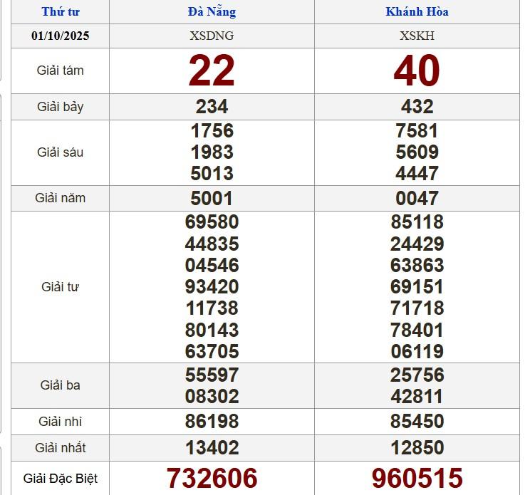 Kết quả xổ số miền Trung (XSMT) hôm nay ngày 01/10