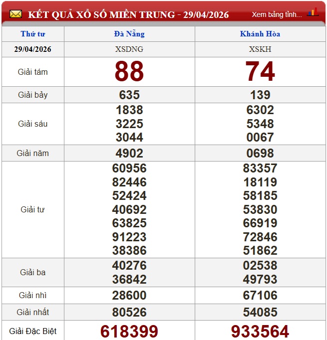 Kết quả xổ số miền Trung (XSMT) ngày 29/4