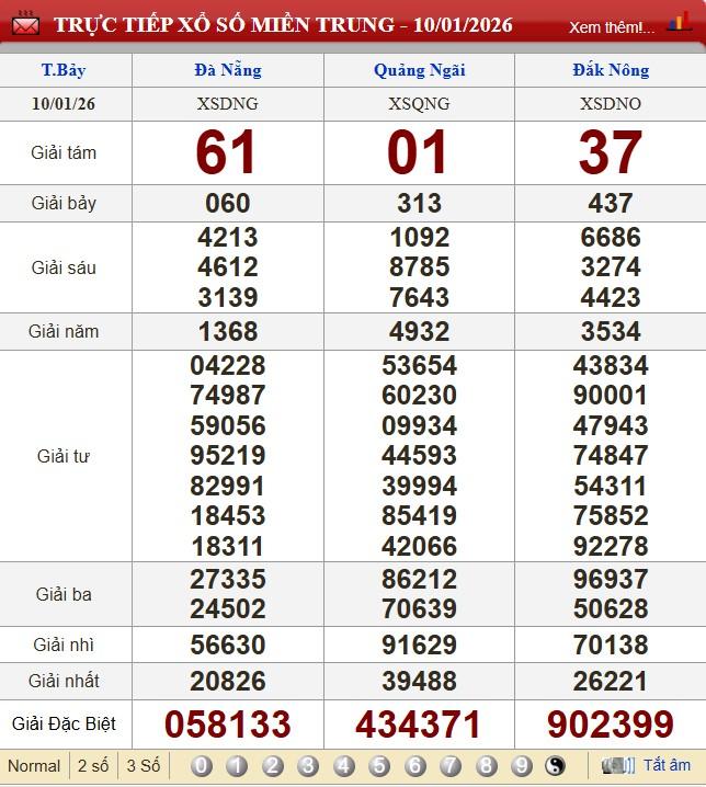 Kết quả xổ số miền Trung ngày 10/1/2026