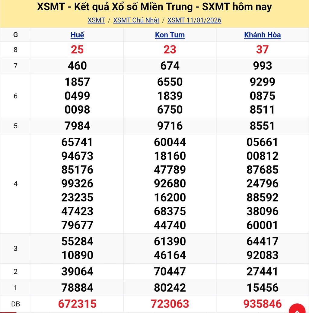 Kết quả xổ số miền Trung ngày 11/1/2026