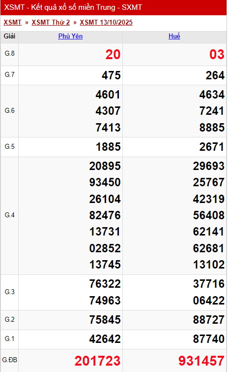 Kết quả xổ số miền Trung (XSMT) hôm nay ngày 13/10