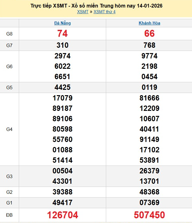 Kết quả xổ số miền Trung ngày 14/1/2026