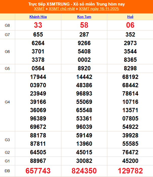 Kết quả xổ số miền Trung ngày 16/11/2025