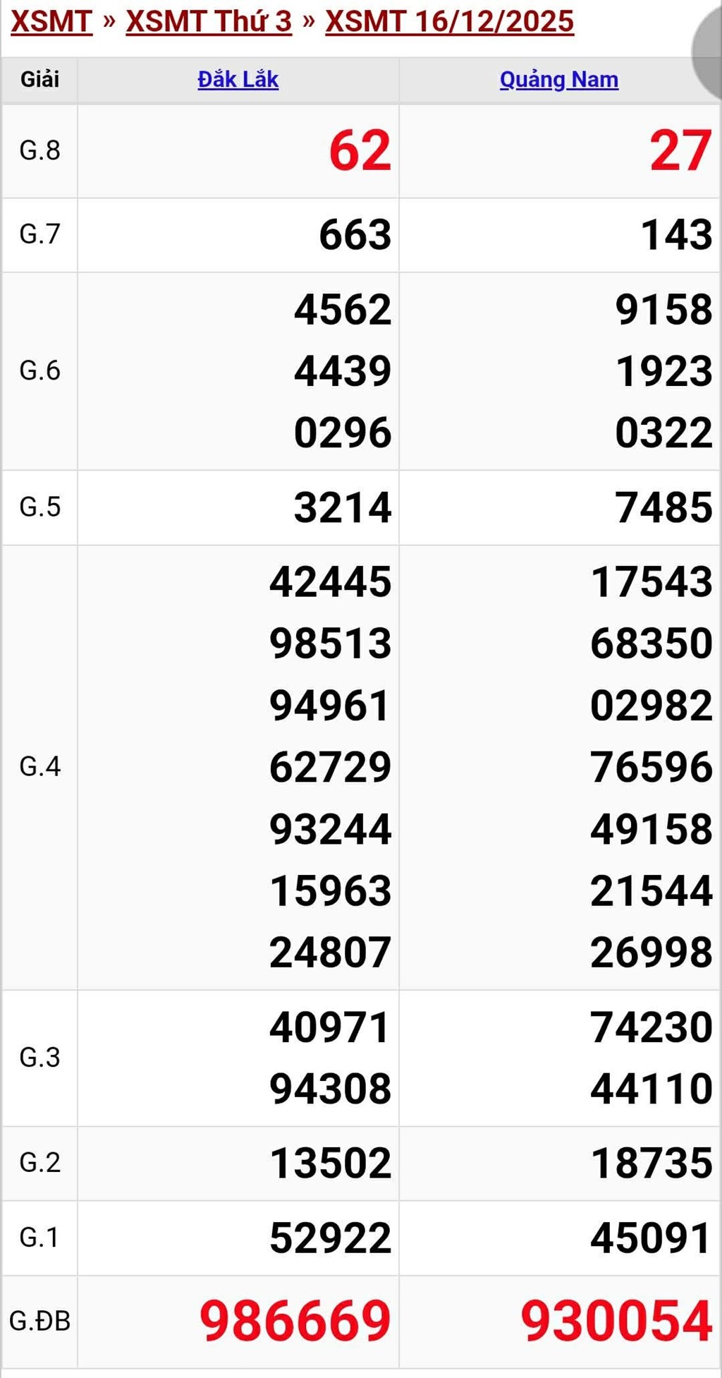 Kết quả xổ số miền Trung ngày 16/12/2025