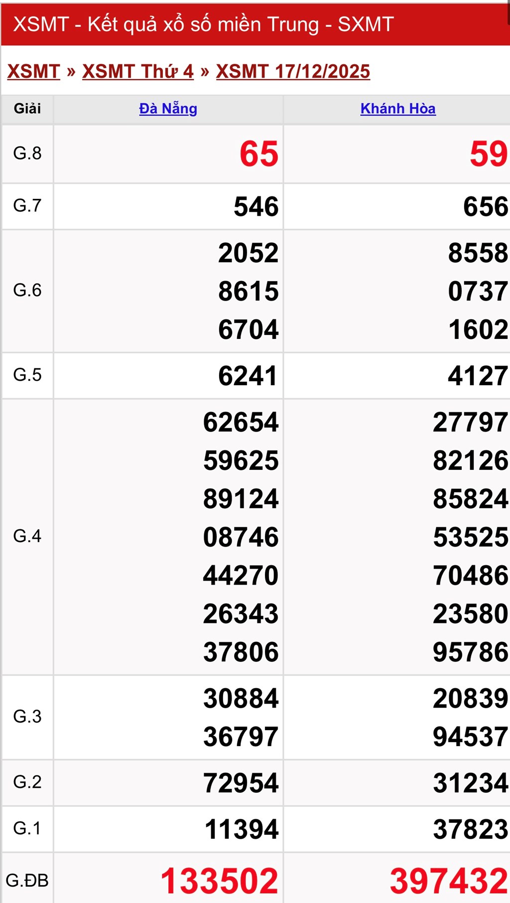 Kết quả xổ số miền Trung ngày 17/12/2025