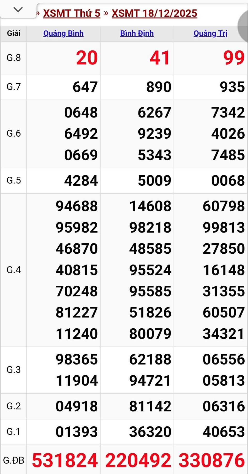 Kết quả xổ số miền Trung ngày 18/12/2025