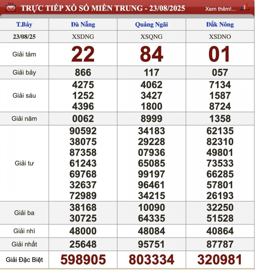 Kết quả xổ số miền Trung (XSMT) hôm nay ngày 23/08