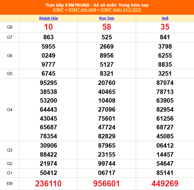 Kết quả xổ số miền Trung (XSMT) hôm nay ngày 24/08