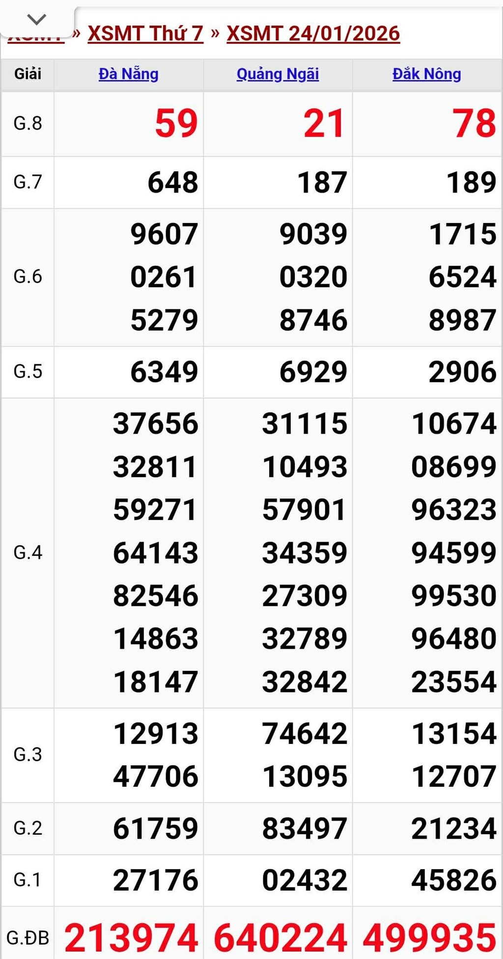 Kết quả xổ số miền Trung ngày 24/1/2026