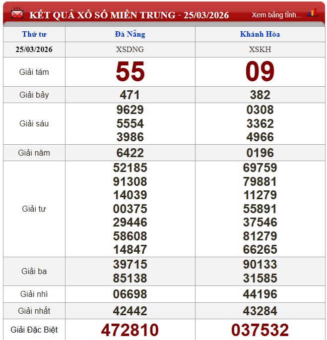 Kết quả xổ số miền Trung (XSMT) hôm nay ngày 25/3