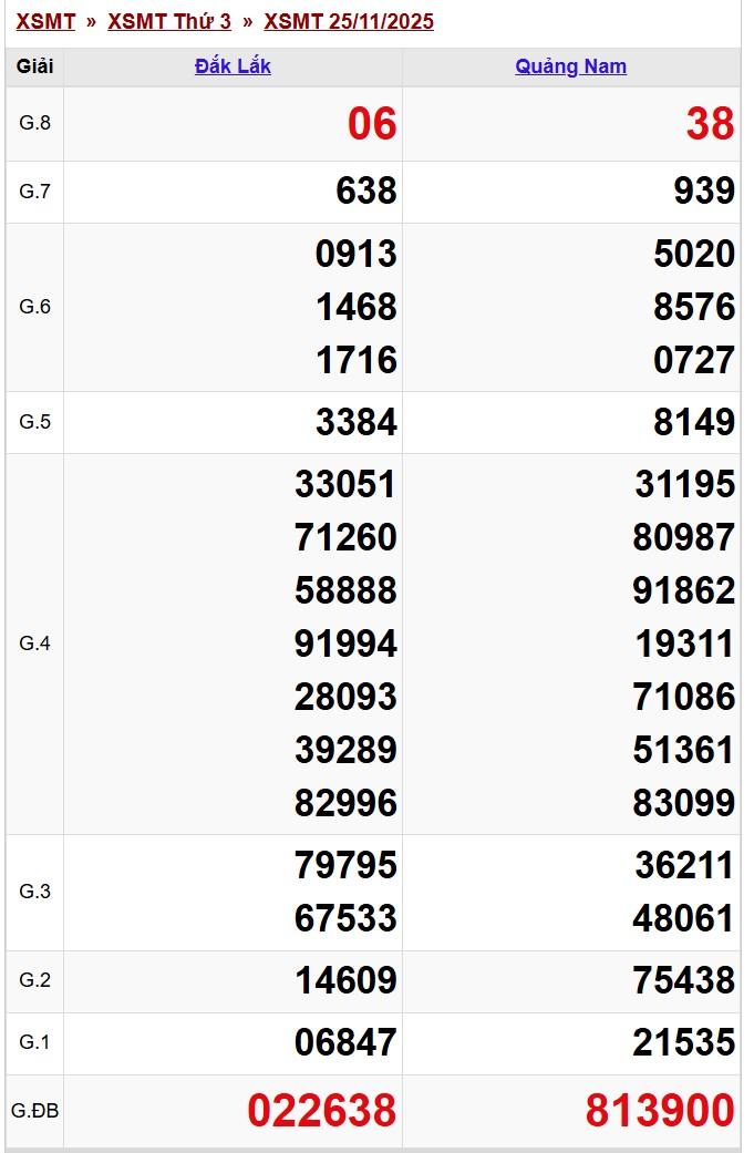 Kết quả xổ số miền Trung ngày 25/11/2025