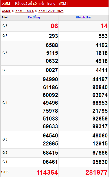 Kết quả xổ số miền Trung ngày 26/11/2025