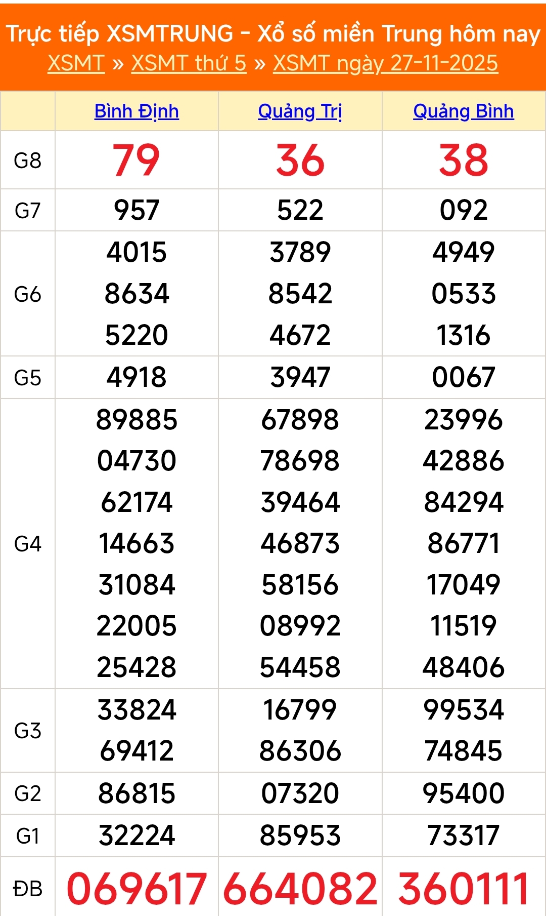 Kết quả xổ số miền Trung (XSMT) hôm nay ngày 27/11