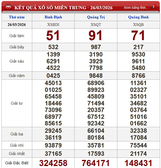 Kết quả xổ số miền Trung (XSMT) hôm nay ngày 26/3 (Cập nhật)