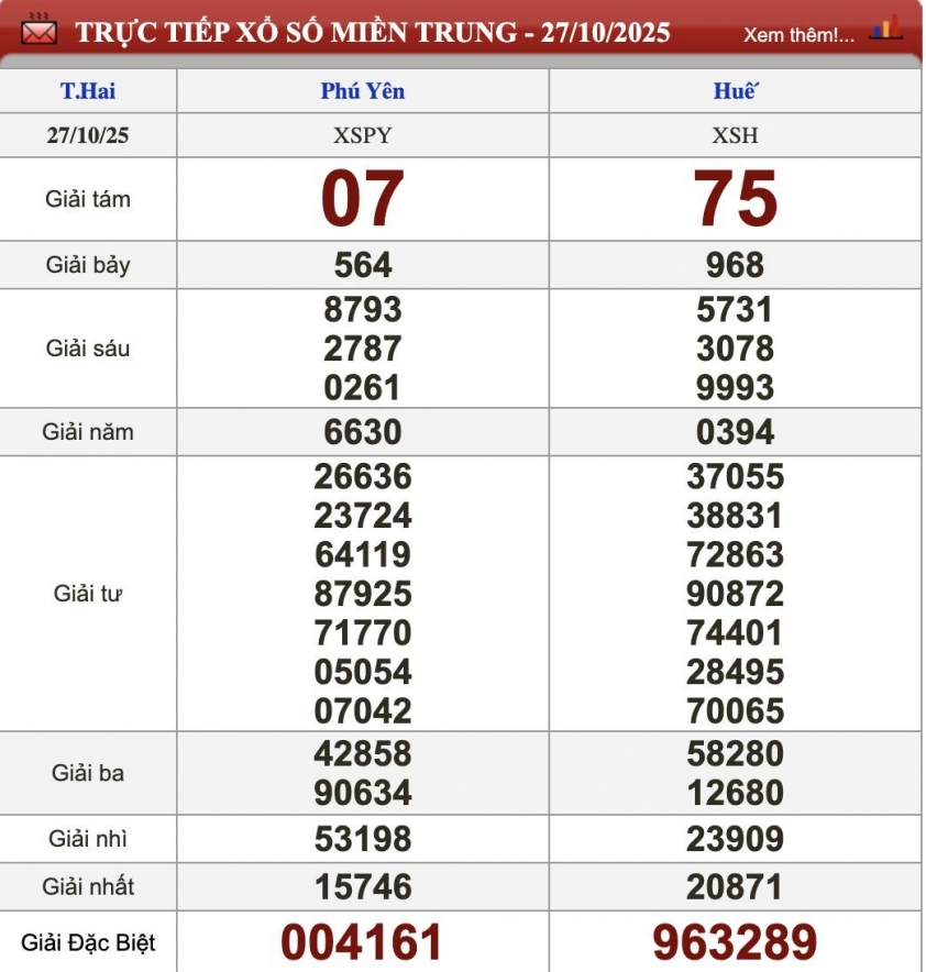 Kết quả xổ số miền Trung (XSMT) hôm nay ngày 27/10