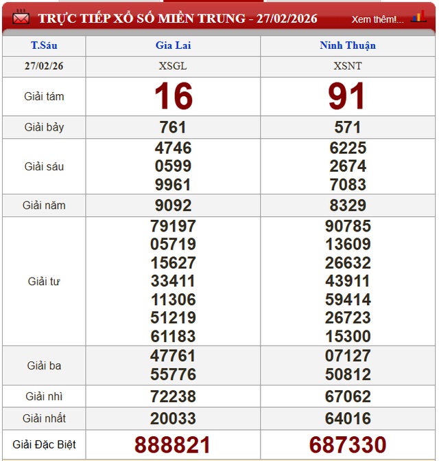 Kết quả xổ số miền Trung ngày 27/2/2026