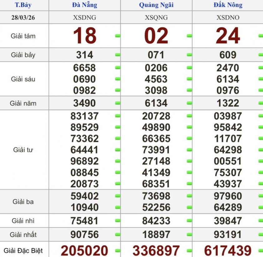 Kết quả xổ số miền Trung (XSMT) ngày 28/3