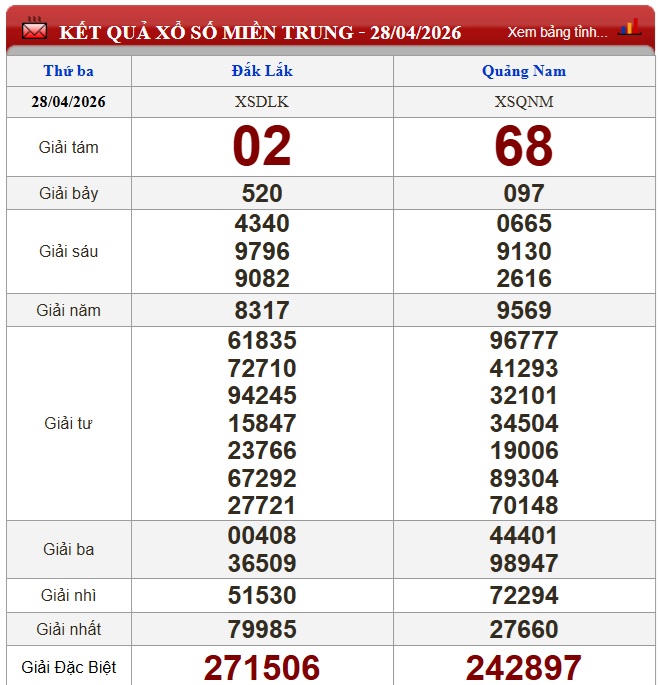 Kết quả xổ số miền Trung (XSMT) ngày 28/4