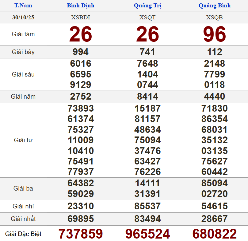 Kết quả xổ số miền Trung ngày 30/10/2025