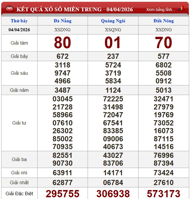 Kết quả xổ số miền Trung ngày 4/4/2026