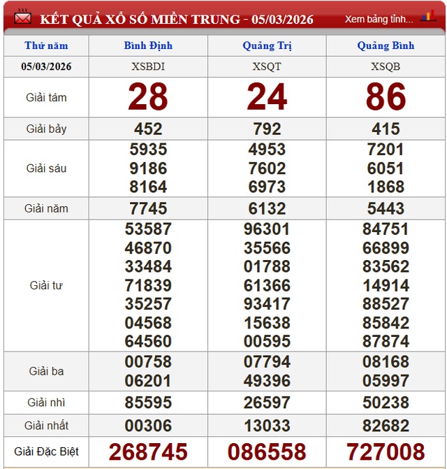 Kết quả xổ số miền Trung ngày 5/3/2026