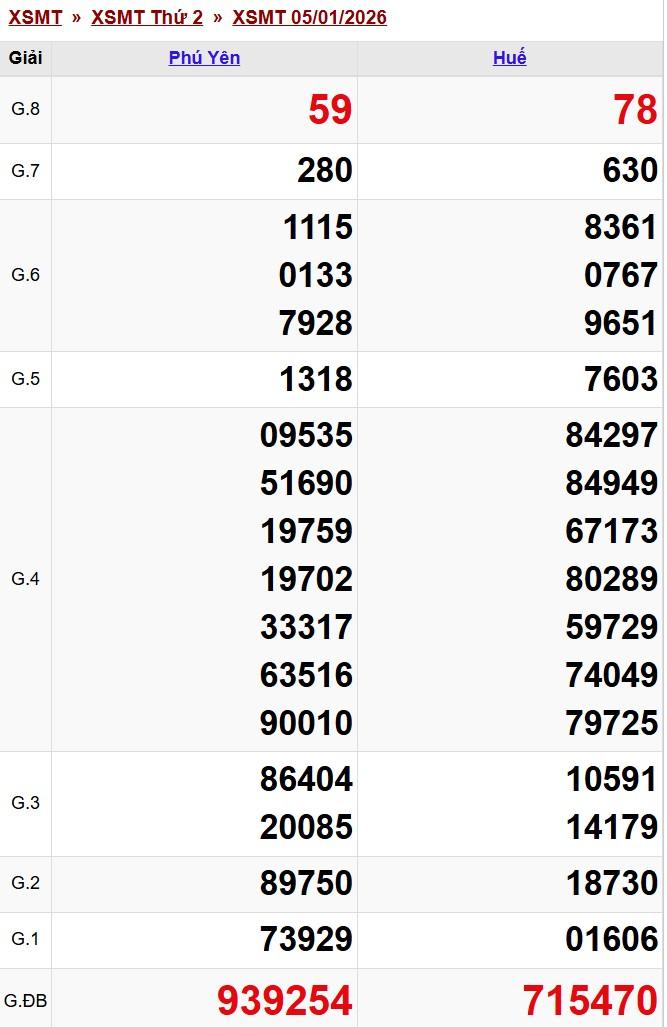 Kết quả xổ số miền Trung ngày 5/1/2026