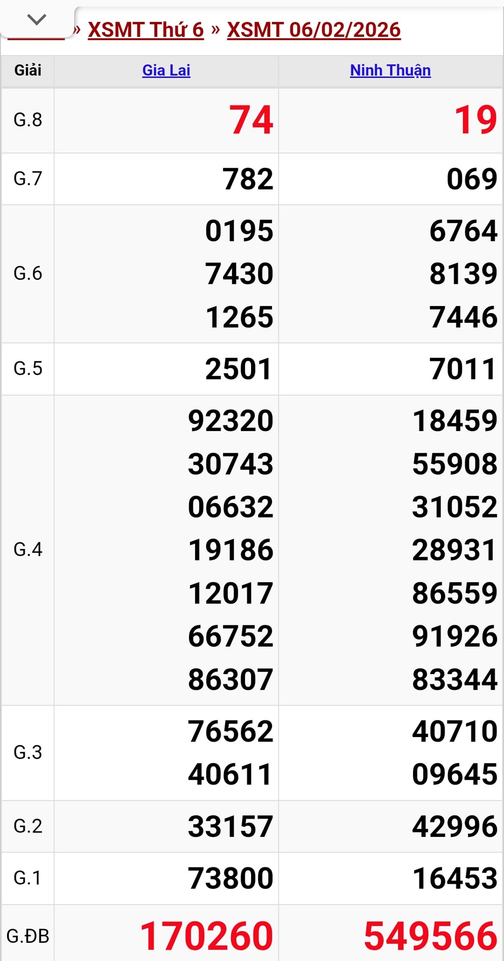 Kết quả xổ số miền Trung ngày 6/2/2026