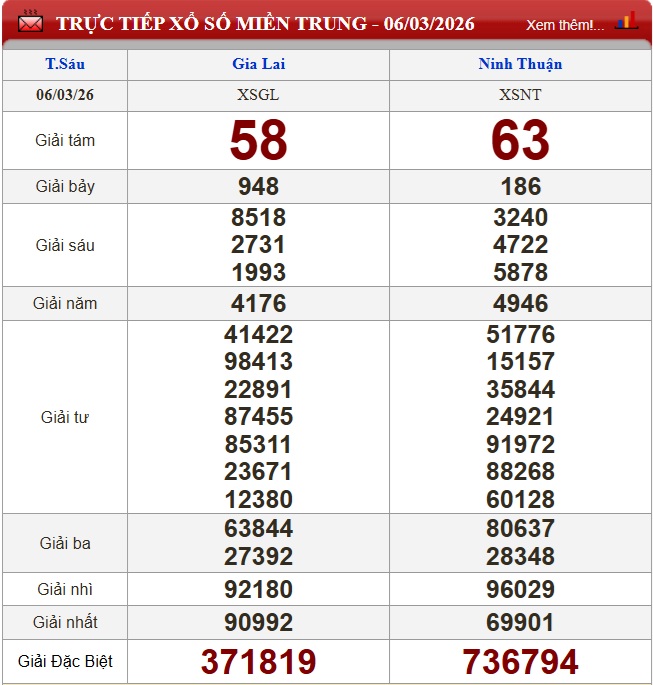 Kết quả xổ số miền Trung ngày 6/3/2026