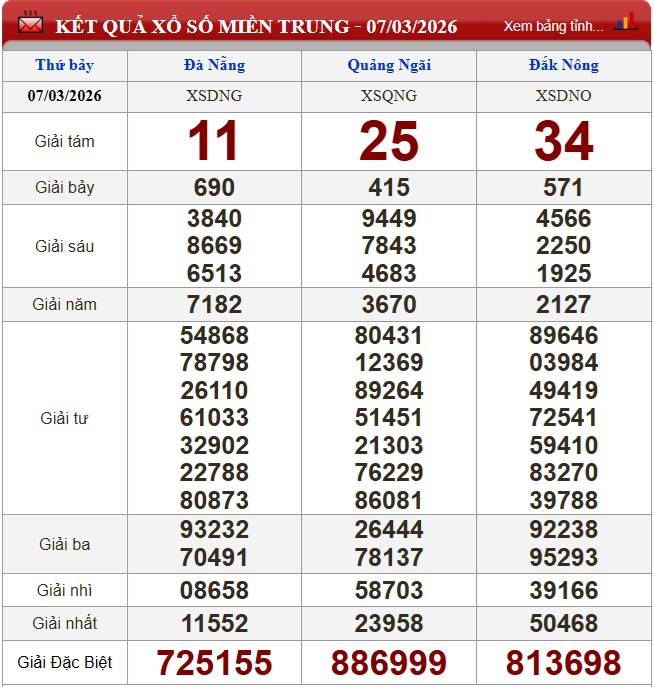 Kết quả xổ số miền Trung ngày 7/3/2026
