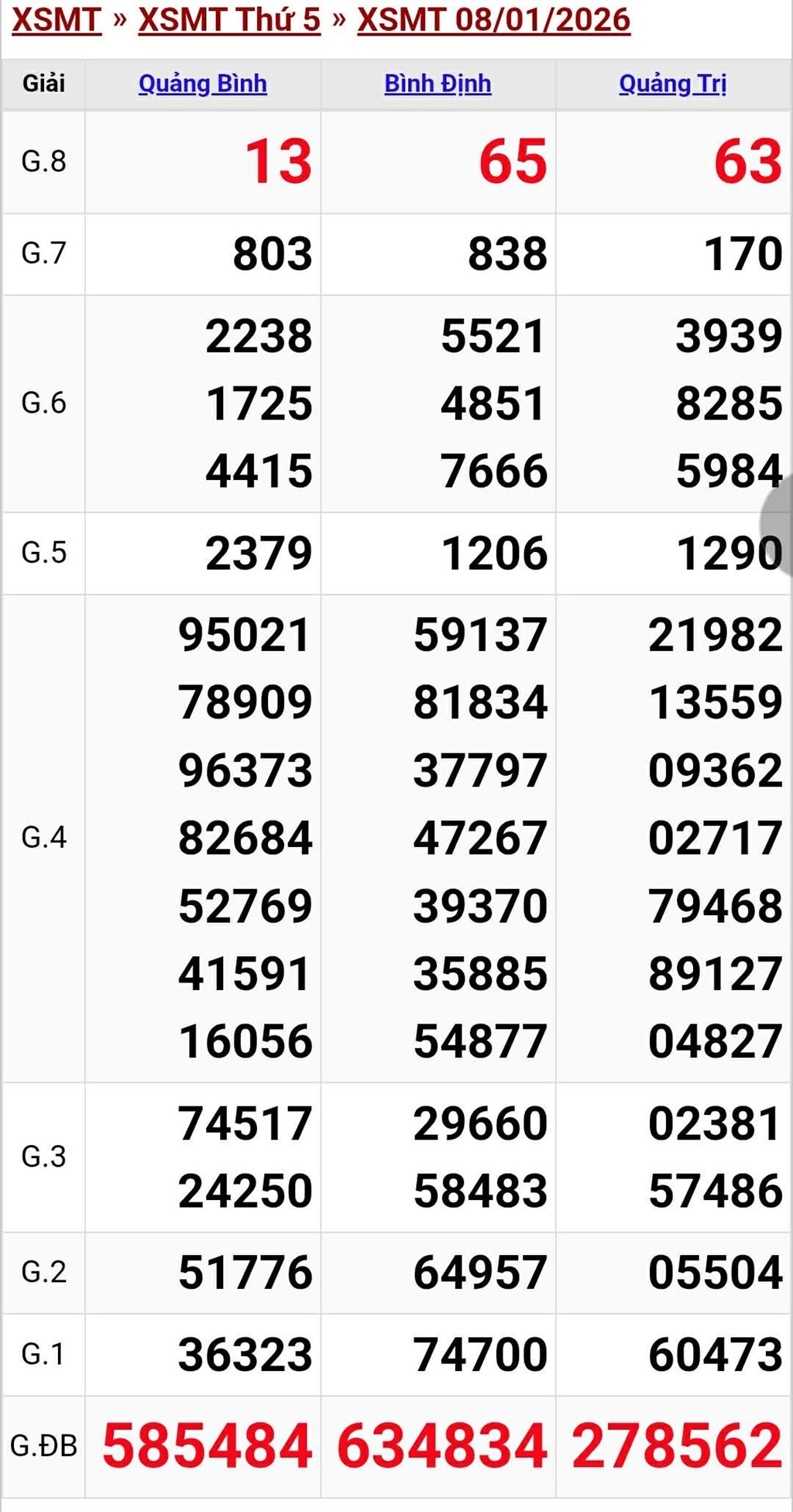 Kết quả xổ số miền Trung ngày 8/1/2026