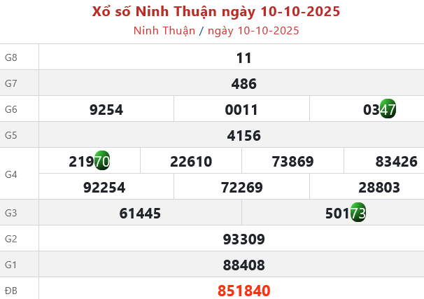 XSNT 10/10, Kết quả xổ số ninh thuận ngày 10/10/2025