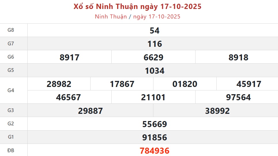 XSNT 17/10, Kết quả xổ số hôm nay ngày 17/10, XSNT Thứ Sáu, Trực tiếp KQXSNT ngày 17/10, Kết quả xổ số Ninh Thuận hôm nay ngày 17/10/2025, Kết quả xổ số Ninh Thuận Thứ Sáu ngày 17/10/2025.