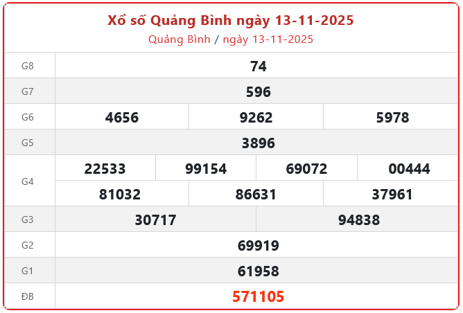 - XSQB 13/11, Kết quả xồ số quảng bình ngày 13/11/2025