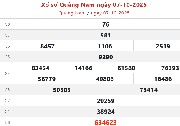 Theo dõi kết quả xổ số Quảng Nam hôm nay 14/10/2025 nhanh chóng và chính xác nhất để không bỏ lỡ thời gian nhận thưởng.