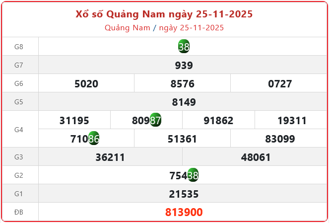 Kết quả xổ số quảng nam thứ Ba ngày 25/11/2025