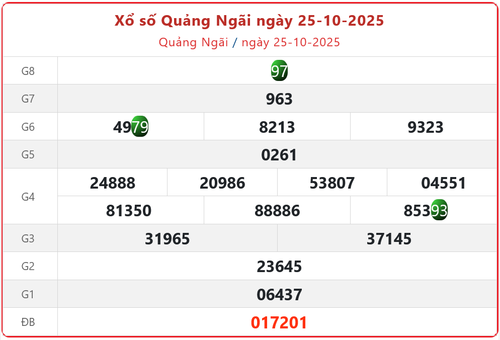 - XSQNG 25/10, Kết quả xổ số Quảng Ngãi ngày 25/10/2025