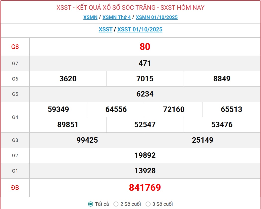Trực tiếp Kết quả xổ số Sóc Trăng hôm nay - Kết quả XSST 8/10 - XSST hôm nay Thứ Tư ngày 8/10/2025