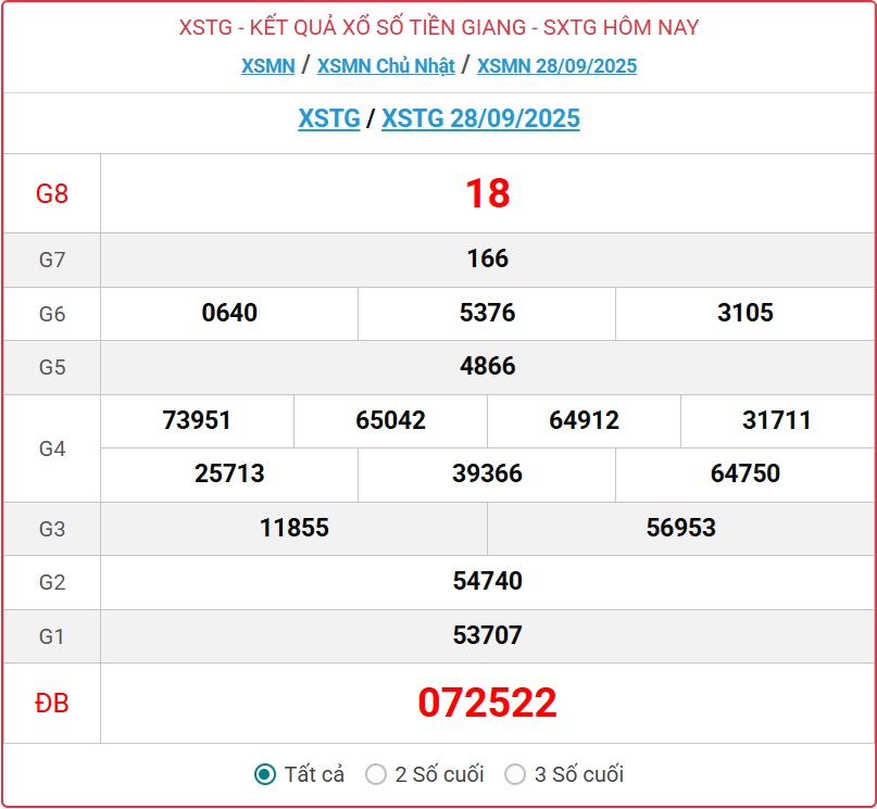 Trực tiếp Kết quả xổ số Tiền Giang hôm nay - Kết quả XSTG 28/9 - XSTG hôm nay Chủ nhật ngày 28/9/2025
