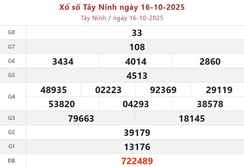 - XSTN 16/10, kết quả xổ số Tây Ninh ngày 16/10/2025