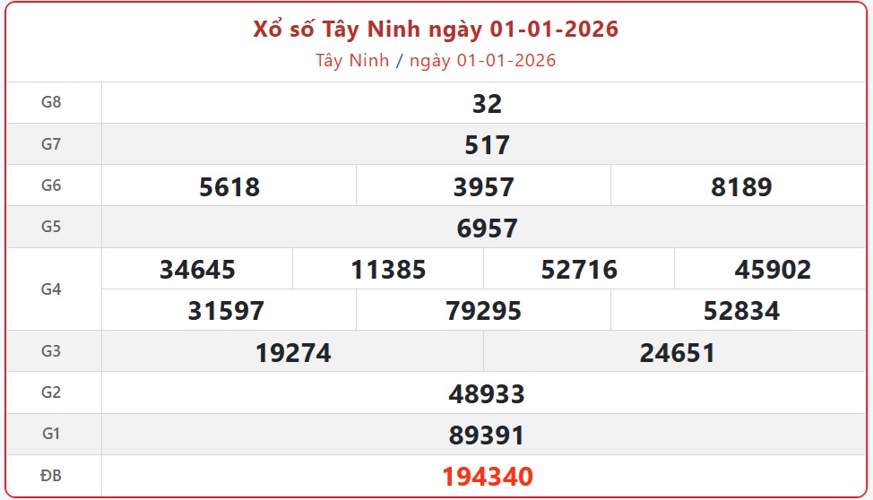 - XSTN 1/1, kết quả xổ số Tây Ninh ngày 1/1/2026